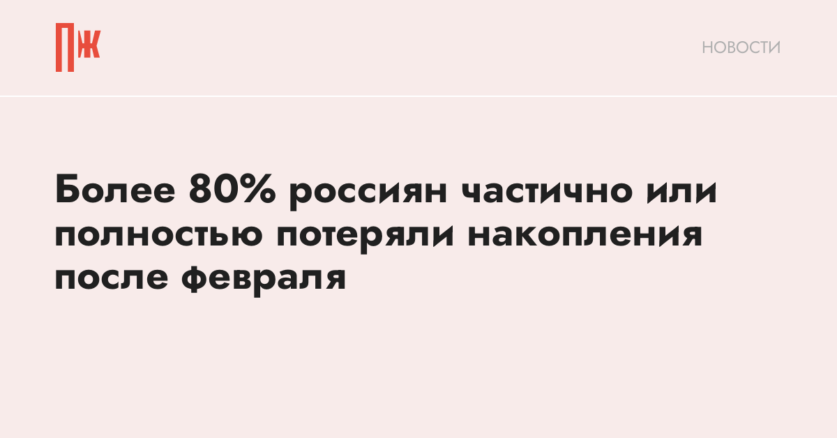 Более 80% россиян частично или полностью потеряли накопления после февраля