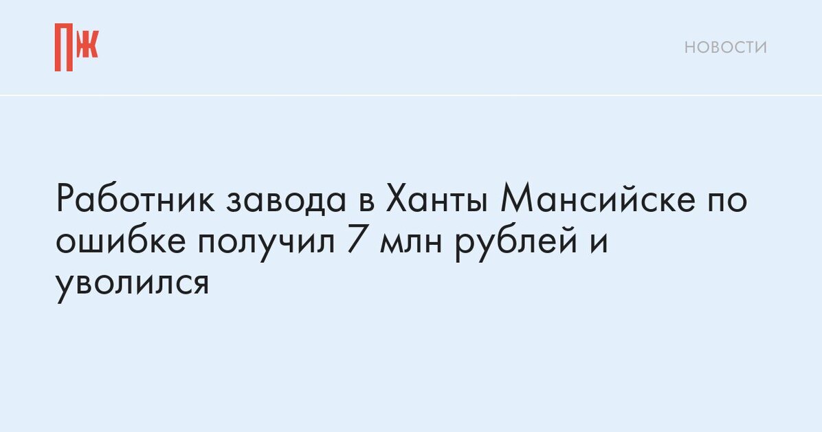 Работник завода в Ханты‑Мансийске по ошибке получил 7 млн рублей и уволился