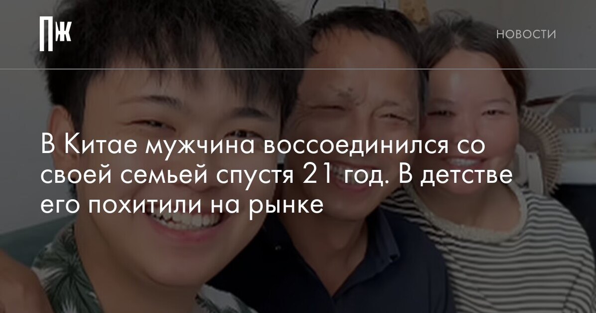 В Китае мужчина воссоединился со своей семьей спустя 21 год. В детстве его похитили на рынке