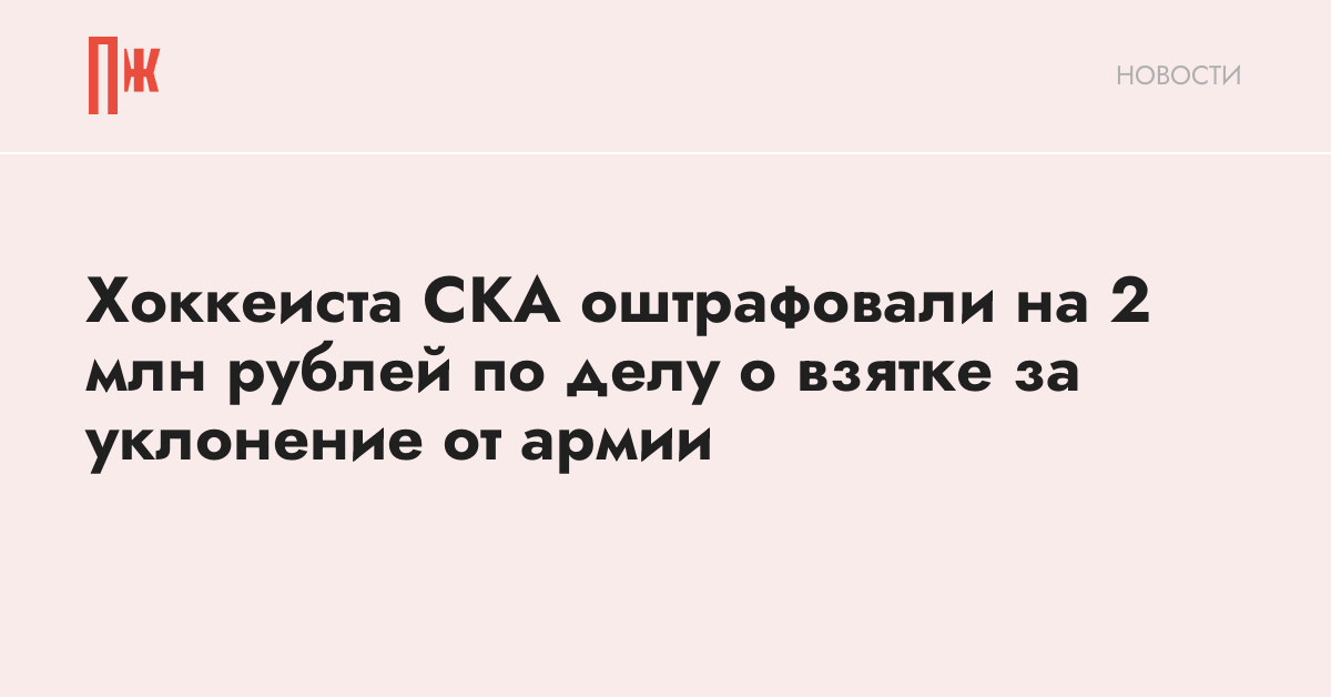 Хоккеиста СКА оштрафовали на 2 млн рублей по делу о взятке за уклонение от армии