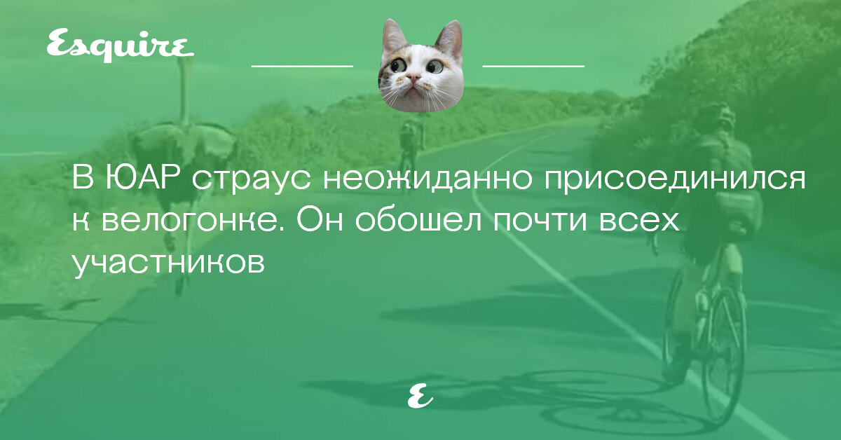 В ЮАР проходила шоссейная велогонка, которая надолго запомнится ее участникам: дело в том, что в какой-то момент к ней присоединился страус. Об этом рассказал один из спортсменов Дэниел Сасс.