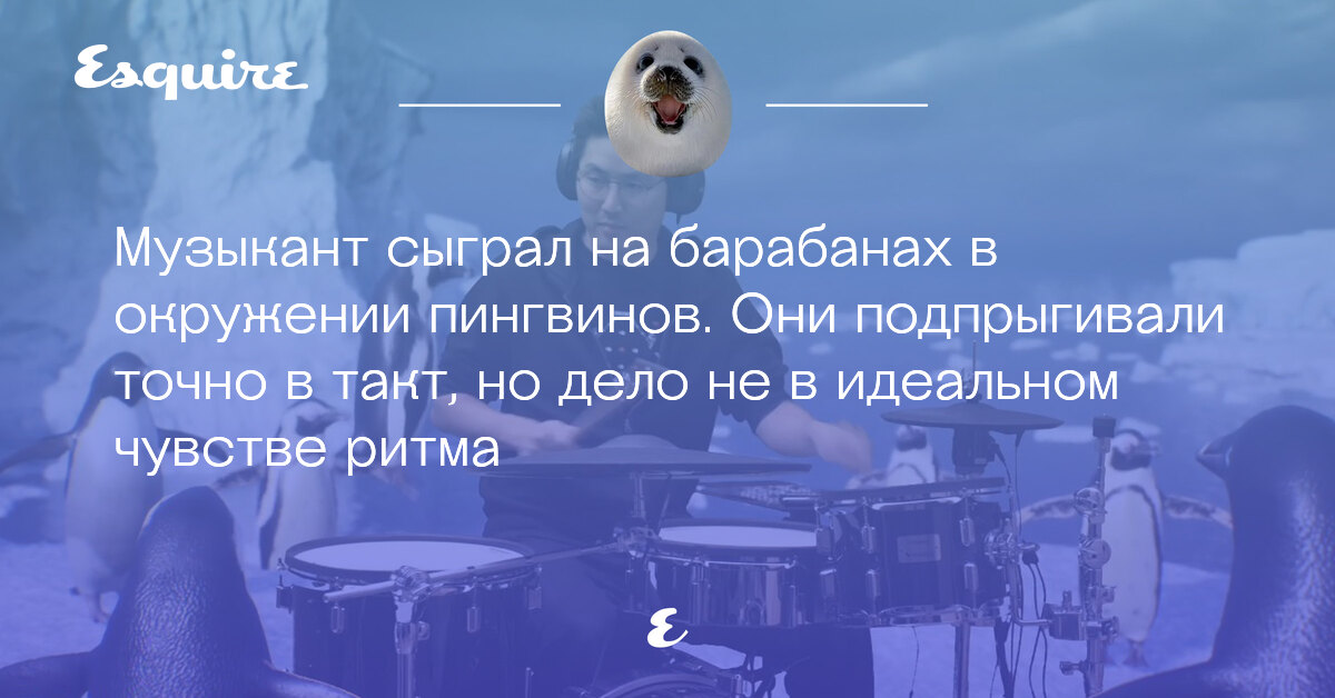 Музыкант сыграл на барабанах в окружении пингвинов. Они подпрыгивали точно в такт, но дело не в идеальном чувстве ритма
