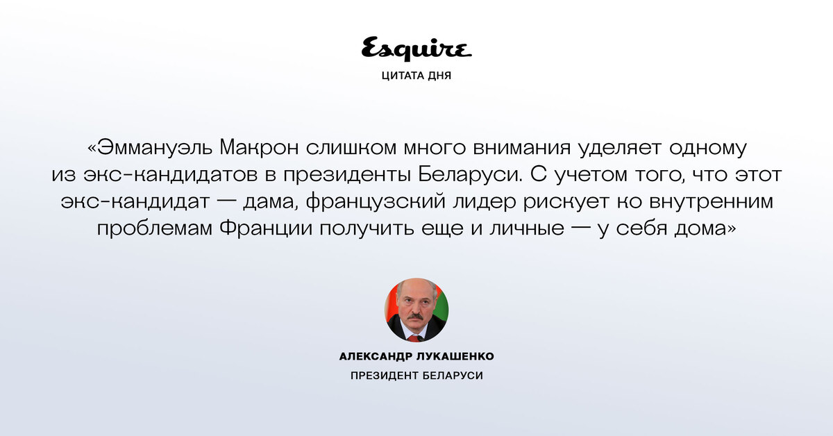 «Эммануэль Макрон слишком много внимания уделяет одному из экс-кандидатов в президенты Беларуси. С учетом того, что этот экс-кандидат — дама, французский лидер рискует ко внутренним проблемам Франции получить еще и личные — у себя дома»