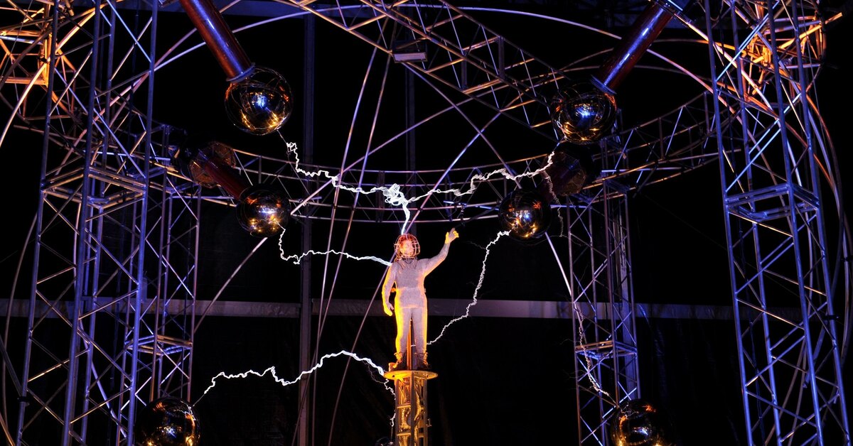 Американский иллюзионист Дэвид Блэйн во&nbsp;время своего <nobr>72-часового</nobr> фокуса &laquo;Electrified: One Million Volts Always On&raquo;, Нью-Йорк.