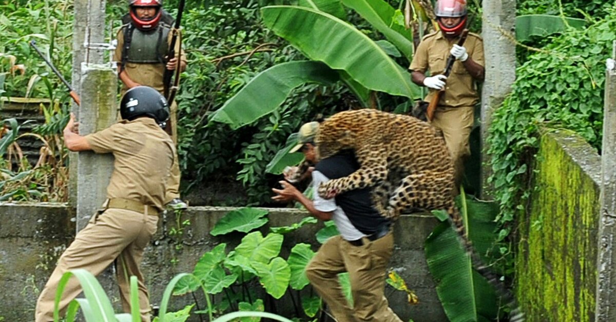 Нападение леопарда на сотрудника лесной охраны. Деревня Пракаш Нагар, Индия.