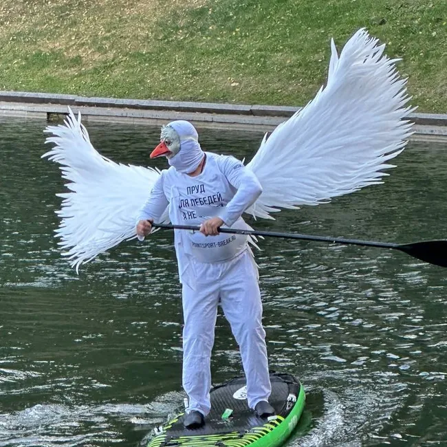 Мужчина в костюме лебедя устроил акцию на Патриарших прудах. Его задержали