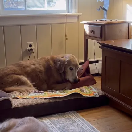 Ретривер по кличке Дюк стал звездой соцсетей благодаря забавной привычке «воровать» и уносить предметы в свою постель