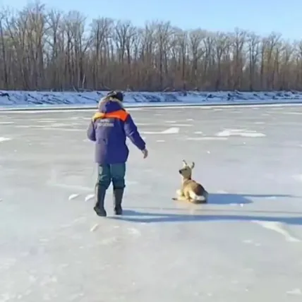 В Саратовской области сотрудники МЧС спасли косулю. Она застряла посреди Волги