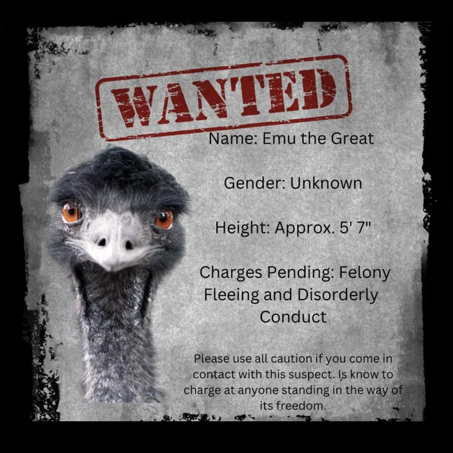 Полиция Миссисипи разыскивает сбежавшего эму за «уклонение от уплаты налогов и нарушение общественного порядка»