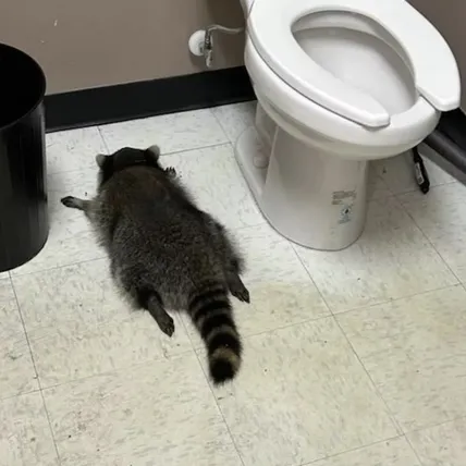В США енот напился в алкогольном магазине и уснул на полу в туалете